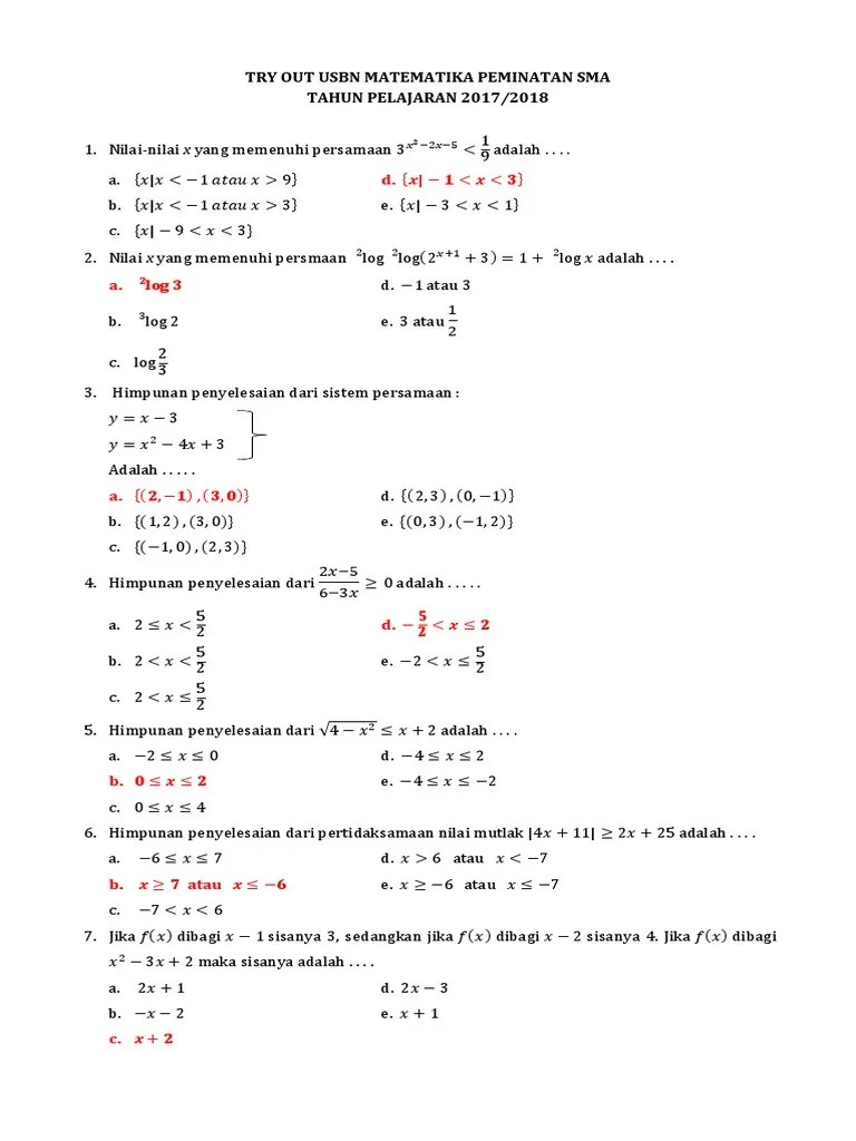 Download soal latihan ujian sekolah (us) sma tahun 2022 mata pelajaran matematika sma program ipa tahun 2021/2022 kurikulum 2013 (disini). Berikut contoh latihan online soal ujian akhir sekolah / madrasah (us uas uam) matematika sma tahun 2021 (sma ipa, sma ips dan sma bahasa). Contoh kunci jawaban revisi usbn pai sma 2021. Materi yang dimuat soal ini merupakan kumpulan materi pelajaran yang berasal dari kelas x sampai dengan kelas xii sma. Berikut admin bagikan 20 paket latihan soal untuk menghadapi usbn .
